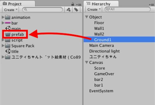 Unity5.1.1f1 Personal(2015年6月) このコンテンツは、『ユニティちゃんライセンス』で提供されています 前回の続きを書いていきます〜 キャラクターの自動スクロール、壁衝突時反転、スペースキーでジャンプ・・・動きはだいぶ整ってきました〜 適当に足場…
